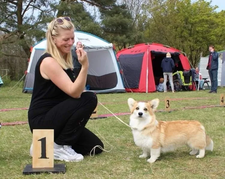 Die Welsh Corgi Pembroke Hündin J-Ch. Daredevil‘s Q As A Button from Starken konnte in diesem Jahr an ihre Erfolge aus der Jugendklasse von 2020 nach ihrer Babypause im Jahr 2021 in diesem Jahr anknüpfen.