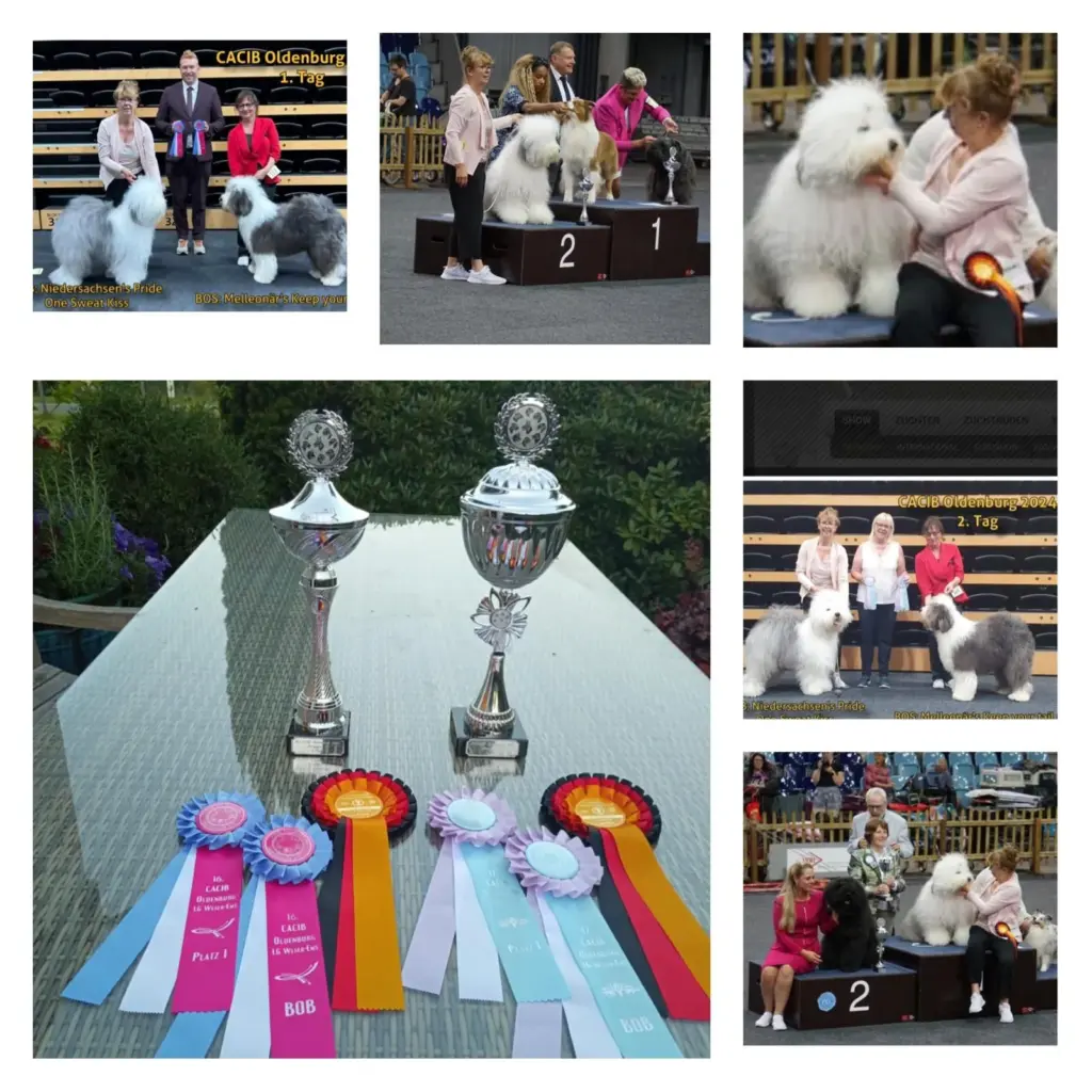 „Niedersachsen’s Pride One Sweet Kiss“ besuchte ihre erste Hallenschau, die CACIB Oldenburg am 02.08.24. Sie bekam das BOB und errang den zweiten Platz in der FCI-Gruppe 1. Am darauffolgenden Tag erhielt sie erneut das BOB und zum krönenden Abschluss gewann sie den 1.Platz in der FCI-Gruppe.